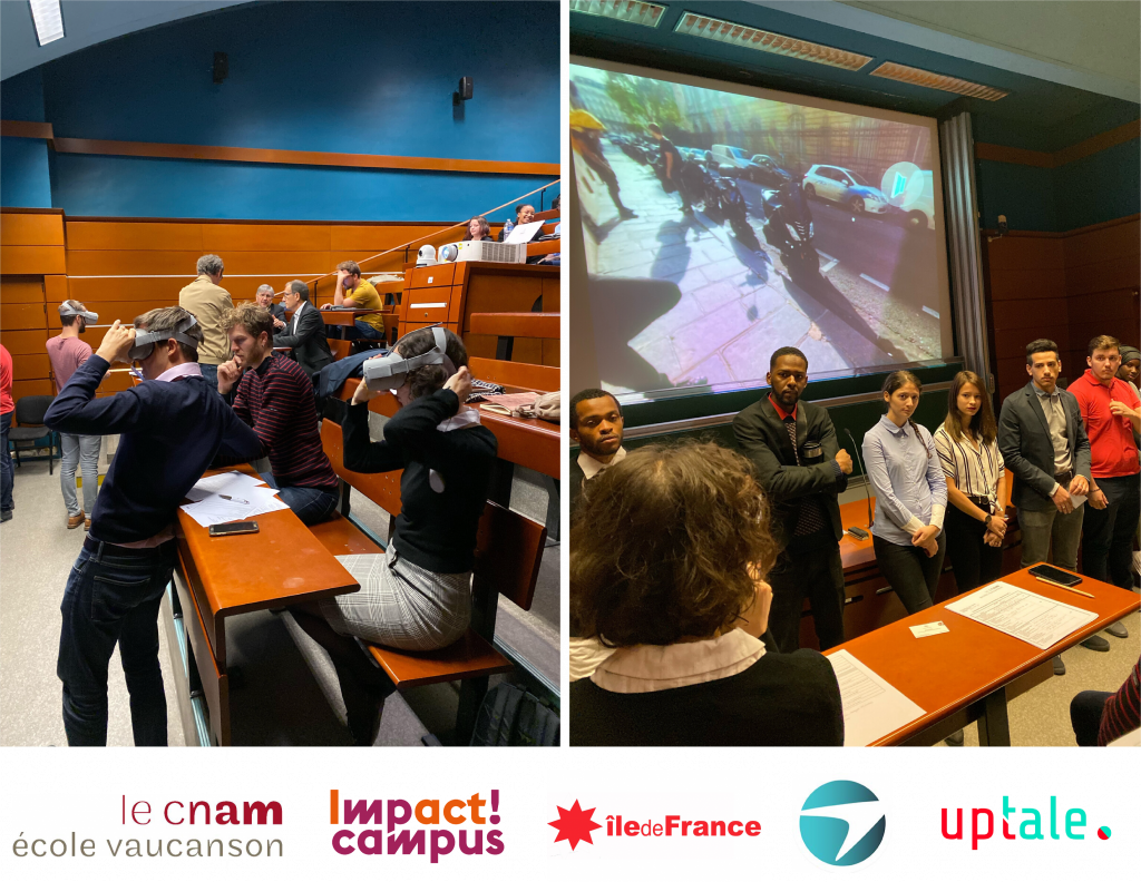 L’Apprentissage Immersif est une technique d’enseignement combinant théorie et pratique. Elle permet de recréer la réalité du terrain grâce à des photos et vidéos 360° auxquelles sont intégrées des interactions pédagogiques. Cette méthode a donc pour objectif de compléter et d’enrichir les techniques actuelles et les moyens mis à disposition aux enseignants.