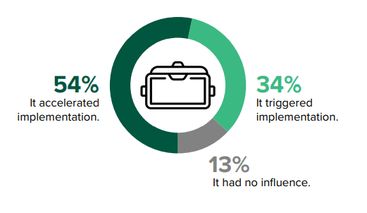 The observation is the same for all companies that have deployed immersive solutions during the crisis: VR continues to prove its worth. Training teams and trainers in the field are much more inclined to use virtual alternatives as a complement to already established training. Resistance to change is reduced, the perception of digital has evolved and the aim is not to replace but to reinforceimprove and make the existing methods more flexible. In fact, 85% of the participants in the study expressed that they had witnessed an improvement in production training and 91% in skills integration and training.