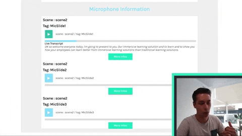 - L’utilisation de fonctionnalités avancées comme la reconnaissance vocale, permettant de déclencher des scénarios conditionnels en fonction de ce qu’aura dit l’apprenant, soit d’analyser de manière précise un exercice oral.